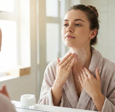 💧 1. Une finesse structurelle Contrairement au visage, le cou est pauvre en glandes sébacées. Il ne peut pas s'auto graisser et se déshydrate deux fois plus vite, créant cet aspect "froissé".