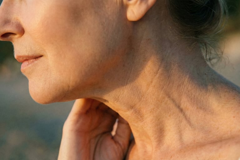 Comme des millions de femmes, sa routine s'arrêtait net au niveau de la mâchoire. Son cou, lui, n'avait jamais reçu la même attention. Il était resté "la zone oubliée", exposé aux mêmes agressions (soleil, pollution, lumière bleue) mais sans aucune armure.